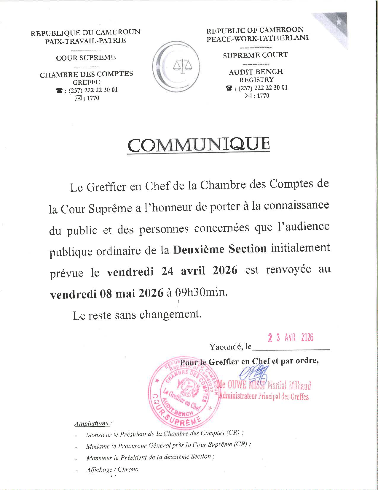 Report de l'audience publique de la 2ème Section du 17 avril au 24 avril 2026