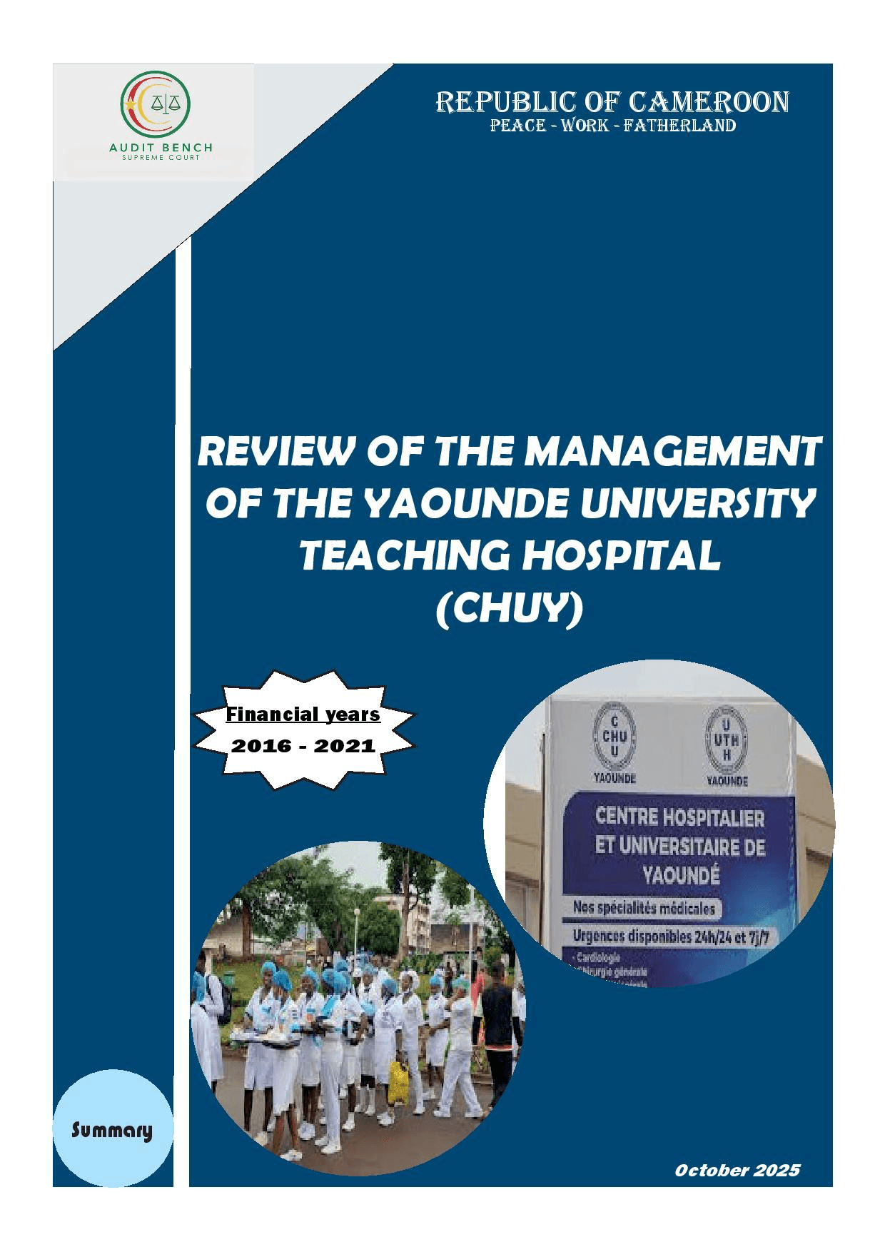 La chambre des comptes de la cour suprême a rendu son rapport concernant l'audit du centre Hospitalier Universitaire de Yaoundé (CHUY) pour la période 2016-2021. Le diagnostic met en évidence des difficultés structurelles, notamment l’absence de bilan et de compte de résultat, des outils pourtant prescrits par la loi de 2017. Cette situation comptable s’accompagne d’un déficit cumulé de 1,469 milliard de FCFA et d’une dette fournisseurs évaluée à plus de 2,8 milliards de FCFA.